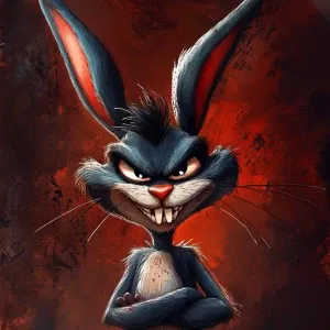 «A stylized, almost demonic version of Bugs Bunny with exaggerate...»