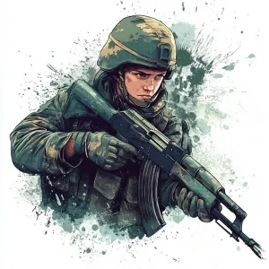 «Logo of russian kid soldier in contemporary military attire, hol...»