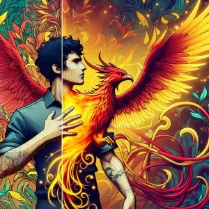 «Design a stylized phoenix tattoo with a red outline and yellow a...»