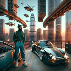 «Realistic painting,a muscular sweaty criminal walking with his m...»