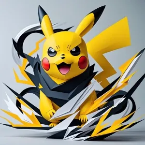 «A fierce, stylized depiction of Pikachu reimagined in layered pa...»