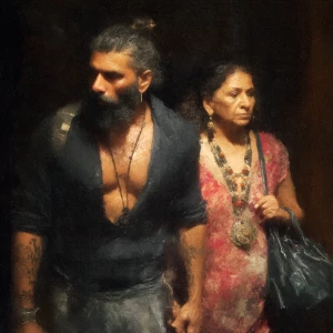 «A cinematic and introspective scene titled “Walking Through Shad...»