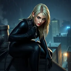 «Create an image of Felicia Hardy, the Black Cat, depicted in a h...»
