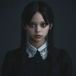 «Create an image of Jenna Ortega portraying the character Wednesd...»