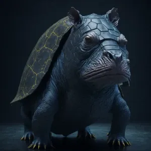 «hippo turtle cat, body of a turtle, head of a hippo, whiskers of...»