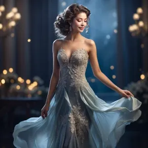 «"A stunning woman with graceful, refined features, wearing an el...»