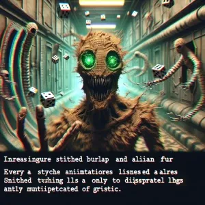 «Create an animated scene where the Oogiewocky, a stitched burlap...»
