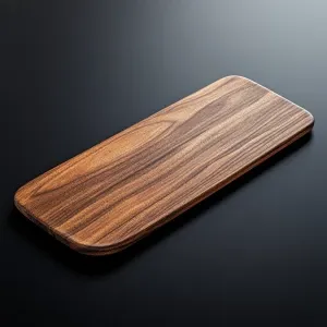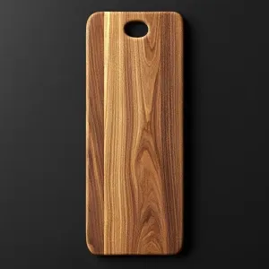 «Create an image of an empty, sleek, elongated wooden charcuterie...»