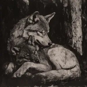 «Create a scene featuring a highly realistic pregnant wolf»