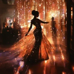 «Imagine a dimly lit lounge with a lavish stage where glittering...»