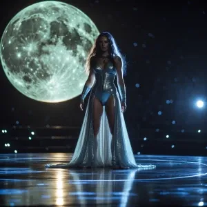 «In the midst of a lunar virtual concert, a solitary figure stand...»