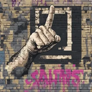 «Generate an image of a hand giving the middle finger, overlaid o...»