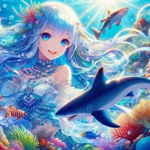 «A dynamic scene of a Blacktip Shark gracefully swimming through...»