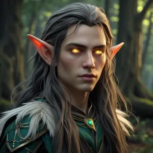 «Generate a fantasy elf character with long hair, pointed ears, g...»