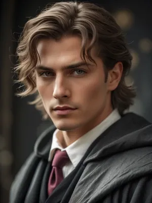 «Design an image of a handsome male wizard donned in a sophistica...»