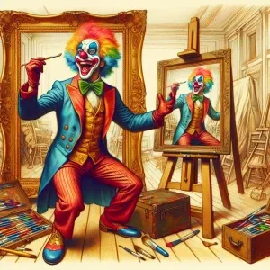 «Generate a norman Rockwell style illustration of a clown dress i...»