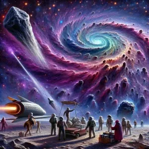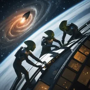 «Aliens conducting an emergency repair on the hull of their space...»
