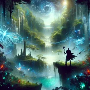 «a dark, anime-style character with a menacing aura, surrounded b...»