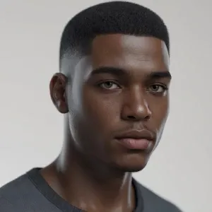 «A 22-year-old African American man with dark skin, a clean-shave...»