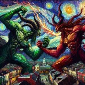 «The Hulk battling Thunderbolt Ross's Red Hulk in New Orleans»