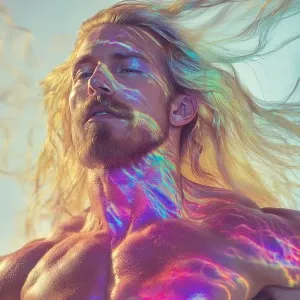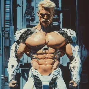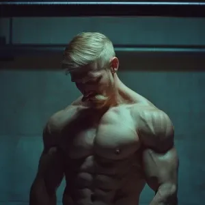 «30 years old jet black hair trimmed beard bodybuilder, artist wi...»