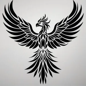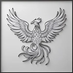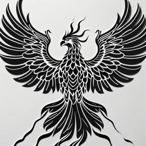«A black and white, line art, suitable for a laser cutter, Phoeni...»