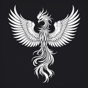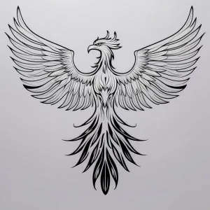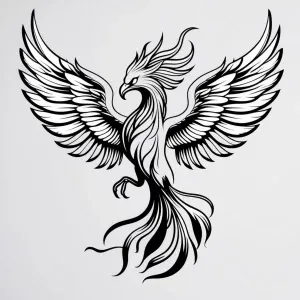 «Create a minimalistic, black and white line art of a Phoenix wit...»