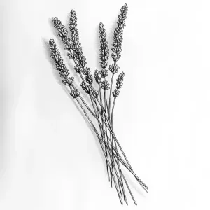 «Pen and ink drawing of a few twigs of lavender flowers that lay...»
