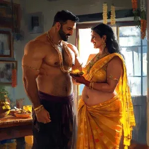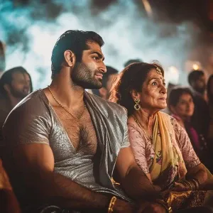 «( art),a man (muscular beefy ,sweaty criminal)celebrating diwali...»
