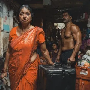 «(Realism),a woman(54-year-old Gujarati housemaid wearing a brigh...»