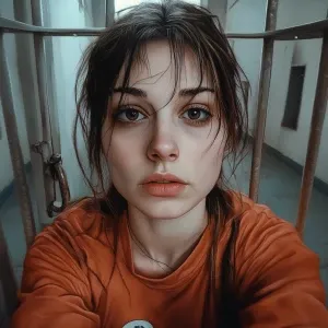 «Beautiful woman in prison, realistic, selfie»