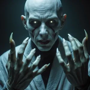 «A nearly human figure, but with skin ghastly white, eyes deeply...»