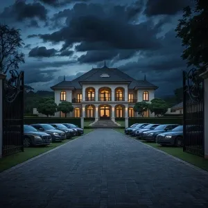 «An opulent villa in northern Cameroon featuring wrought iron gat...»
