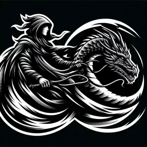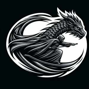«Create a logo depicting a cloaked figure with a sense of dynamis...»