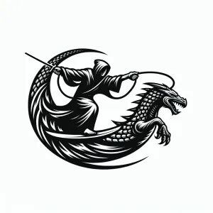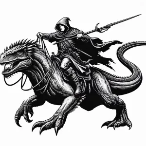 «create me a image / logo of a hooded man riding a reptilian styl...»