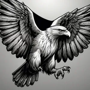 «Create a minimalistic, black and white line art of a eagle with...»
