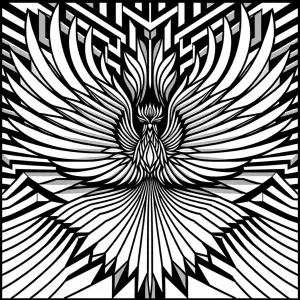 «Create a minimalistic, black and white line art of a Phoenix wit...»