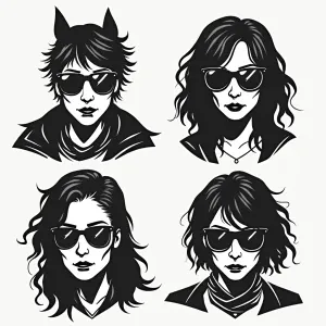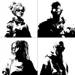 «make 4 stencils of cyberpunk people with a transparent backgroun...»