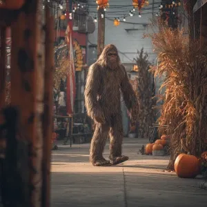 «Show a humanoid looking haircovered  Sasquatch walking through a...»