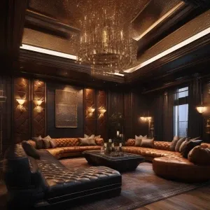 «luxurious modern lounge interior, throne room remix, central ove...»