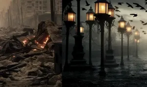 «Imagine a mythic post-apocalyptic scene: a city scorched by nucl...»
