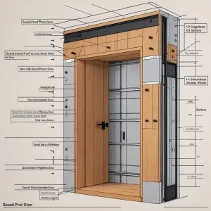 «Create an architectural plan and section of a sound proof door f...»