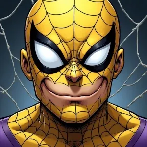 «close-up portrait of Spider-Man with a highly exaggerated and co...»