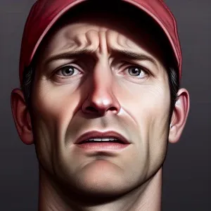 «Generate a hyper-realistic portrait of a man waring a red baseba...»