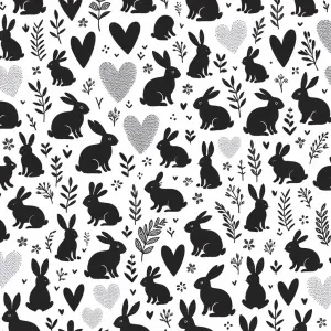 «A seamless pattern of tiny bunnies, hearts and floral elements i...»