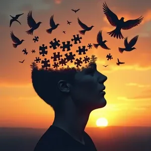 «Illustrate the concept of thoughts or memories escaping the mind...»