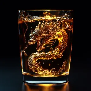 «Dramatic macro photography. A drop of molten gold forms the face...»