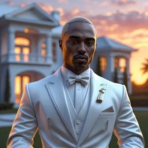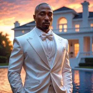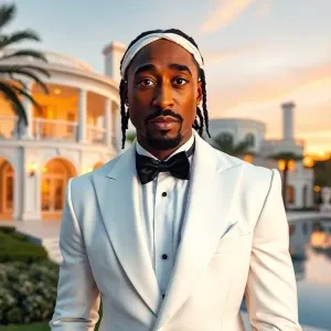 «create a highly detailed image of a man resembling 2Pac, dressed...»