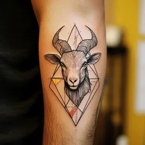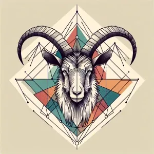 «Colourful geometric tattoo of a wild goat, front on, sketch styl...»