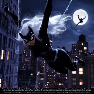 “Animate Felicia Hardy (Black Cat) gracefully swinging thr...»